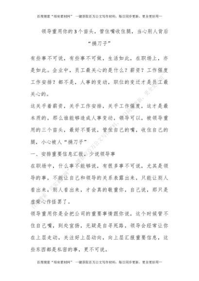 领导重用你的3个苗头,管住嘴收住腿,当心别人背后“捅刀子”[更多资源请百度搜索“培实素材网”]