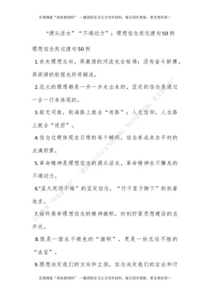 “源头活水”“不竭动力”:理想信念类过渡句50例[更多资源请百度搜索“培实素材网”]