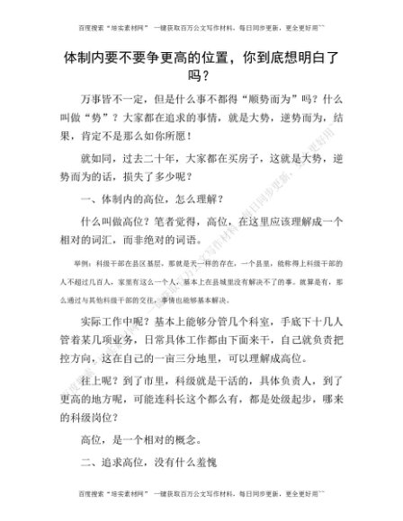 体制内要不要争更高的位置,你到底想明白了吗?(1)[更多资源请百度搜索“培实素材网”]