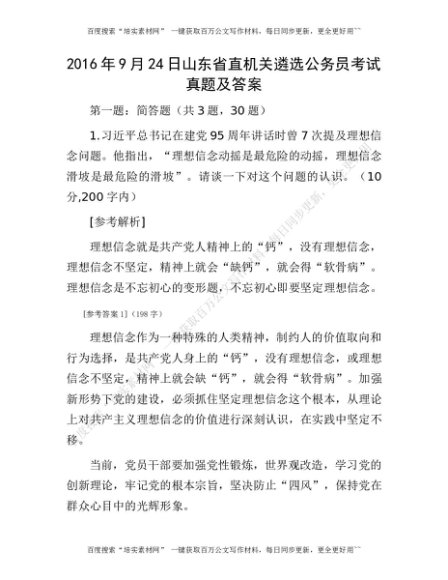 2016年9月24日山东省直机关遴选公务员考试真题及答案[更多资源请百度搜索“培实素材网”]