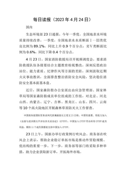 每日读报(2023年4月24日)[更多资源请百度搜索“培实素材网”]