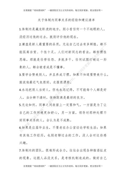 关于体制内同事关系的经验和建议清单[更多资源请百度搜索“培实素材网”]