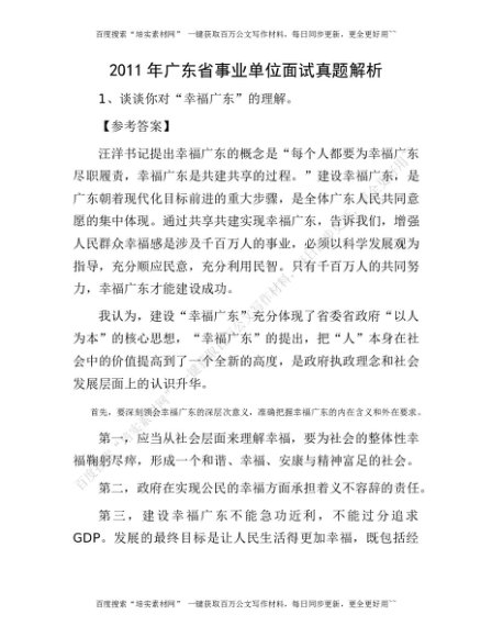 2011年广东省事业单位面试真题解析(1)[更多资源请百度搜索“培实素材网”]