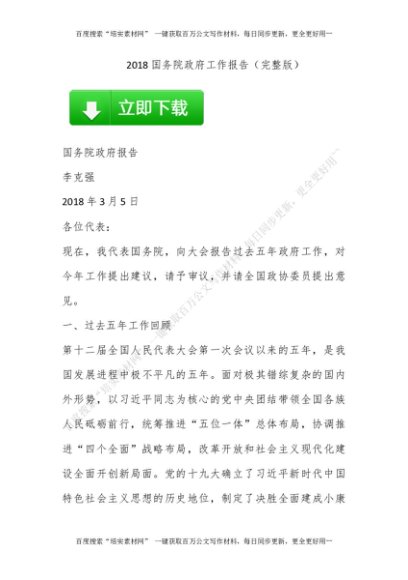 XXXX国务院政府工作报告(完整版)[更多资源请百度搜索“培实素材网”]