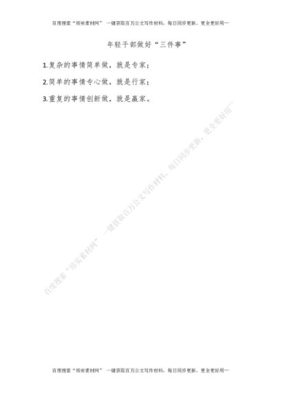 年轻干部做好“三件事”[更多资源请百度搜索“培实素材网”]