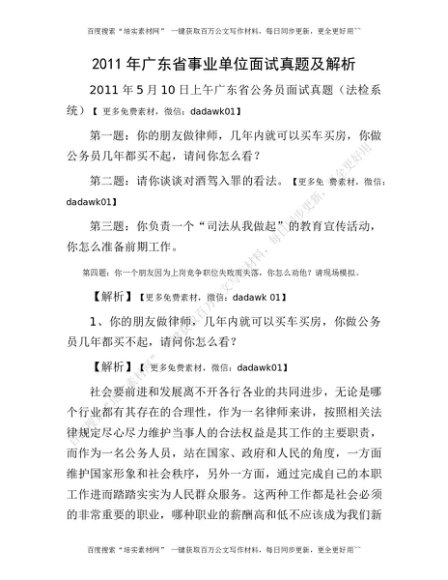2011年广东省事业单位面试真题及解析(1)[更多资源请百度搜索“培实素材网”]