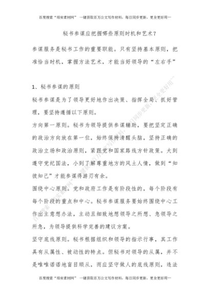 秘书参谋应把握哪些原则时机和艺术?[更多资源请百度搜索“培实素材网”]