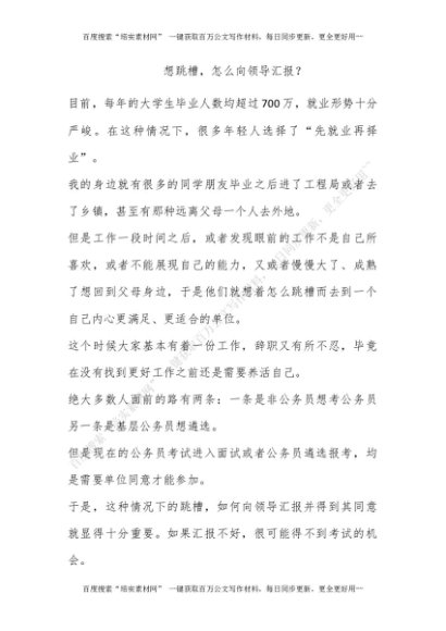 想跳槽,怎么向领导汇报?[更多资源请百度搜索“培实素材网”]