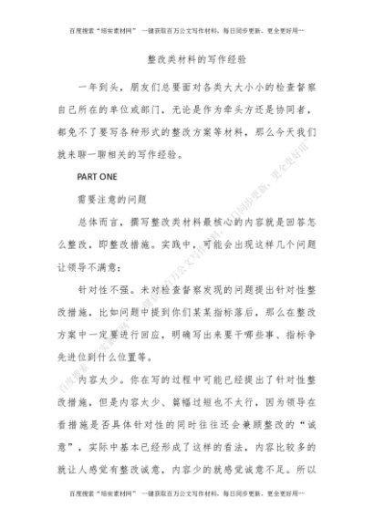 整改类材料的写作经验[更多资源请百度搜索“培实素材网”]