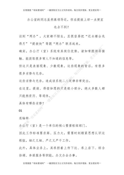 办公室的同志虽然离领导近,但在提拔上却一点便宜也占不到?[更多资源请百度搜索“培实素材网”]
