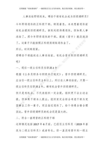 人事冻结即将到来,哪些干部有机会成为四级调研员?[更多资源请百度搜索“培实素材网”]