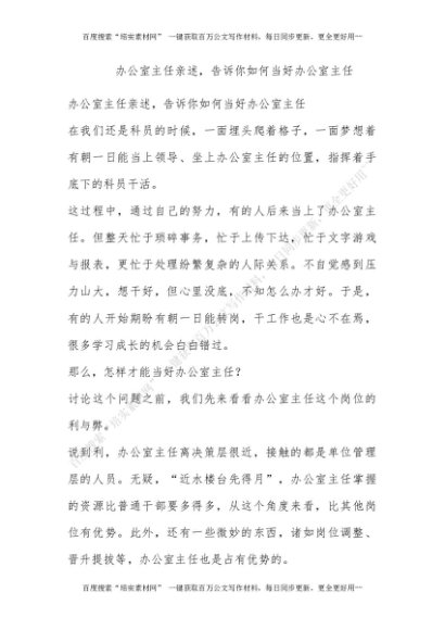 办公室主任亲述,告诉你如何当好办公室主任![更多资源请百度搜索“培实素材网”]