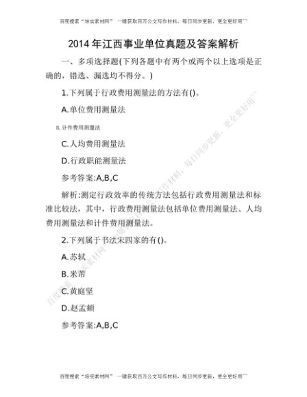 2014年江西事业单位真题及答案解析[更多资源请百度搜索“培实素材网”]